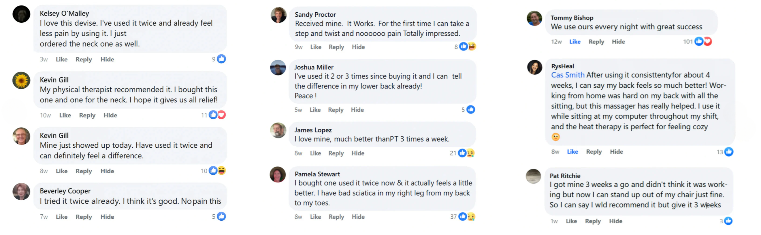 - 33% used it more than once daily, with many noticing relief in as little as 7 days from sciatica, herniated discs, and posture-related fatigue.