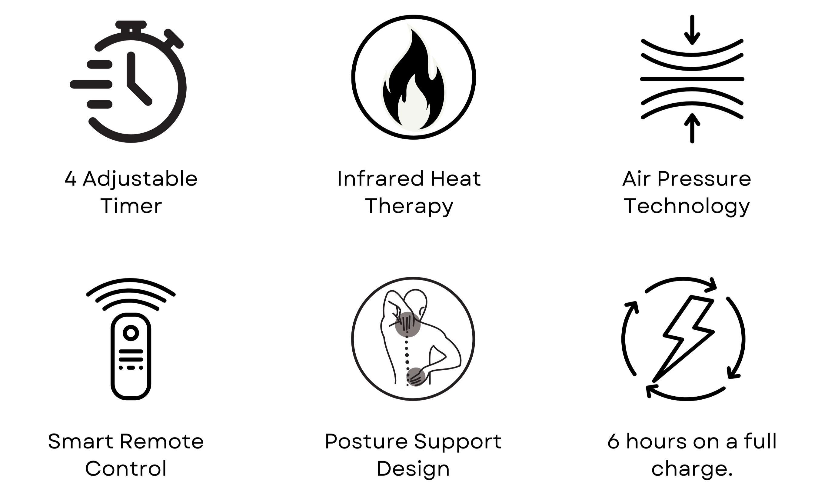 The Far-infrared remote control lets you easily adjust the Massage mode, Heat settings, and Timer with zero hassle-perfect for when you want a truly hands-free experience.