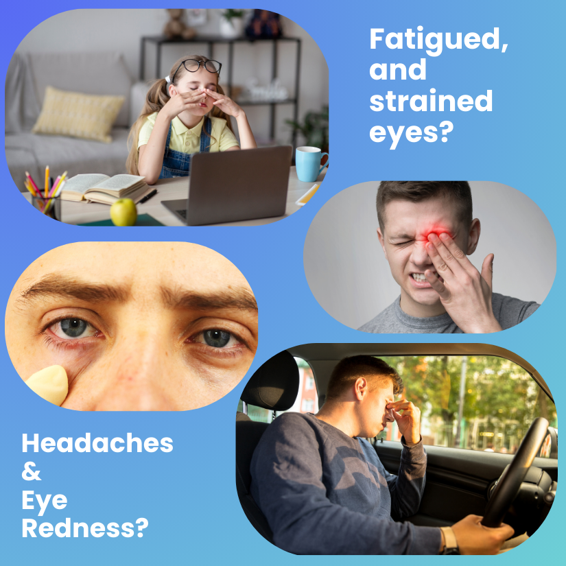 Relieves headaches, Migraine Pain, blurry vision, or discomfort.