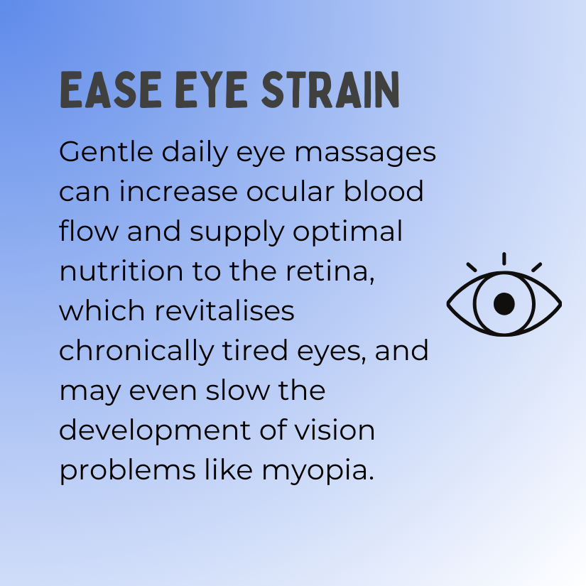 Improves blood circulation which helps restore natural moisture in the eyes.