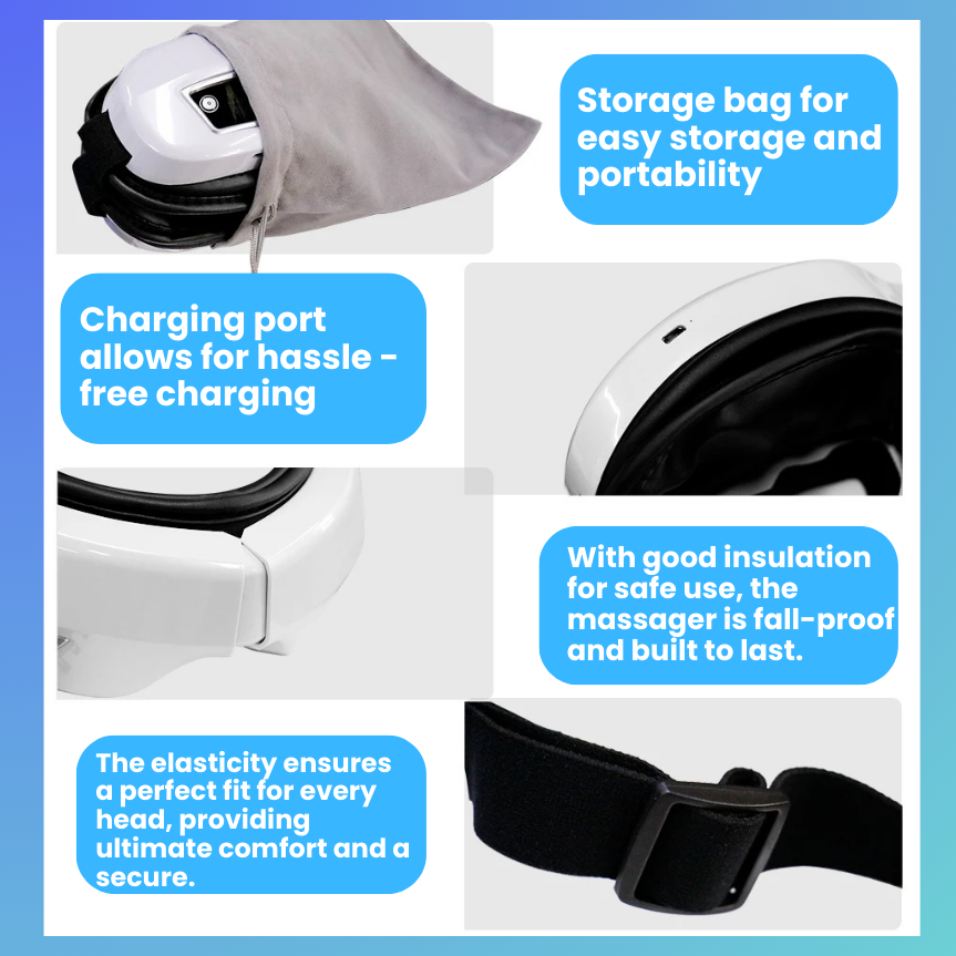 - Comprehensive Massage: The airbags mimic the feel of human hands, targeting the muscles around your eyes to release tension.