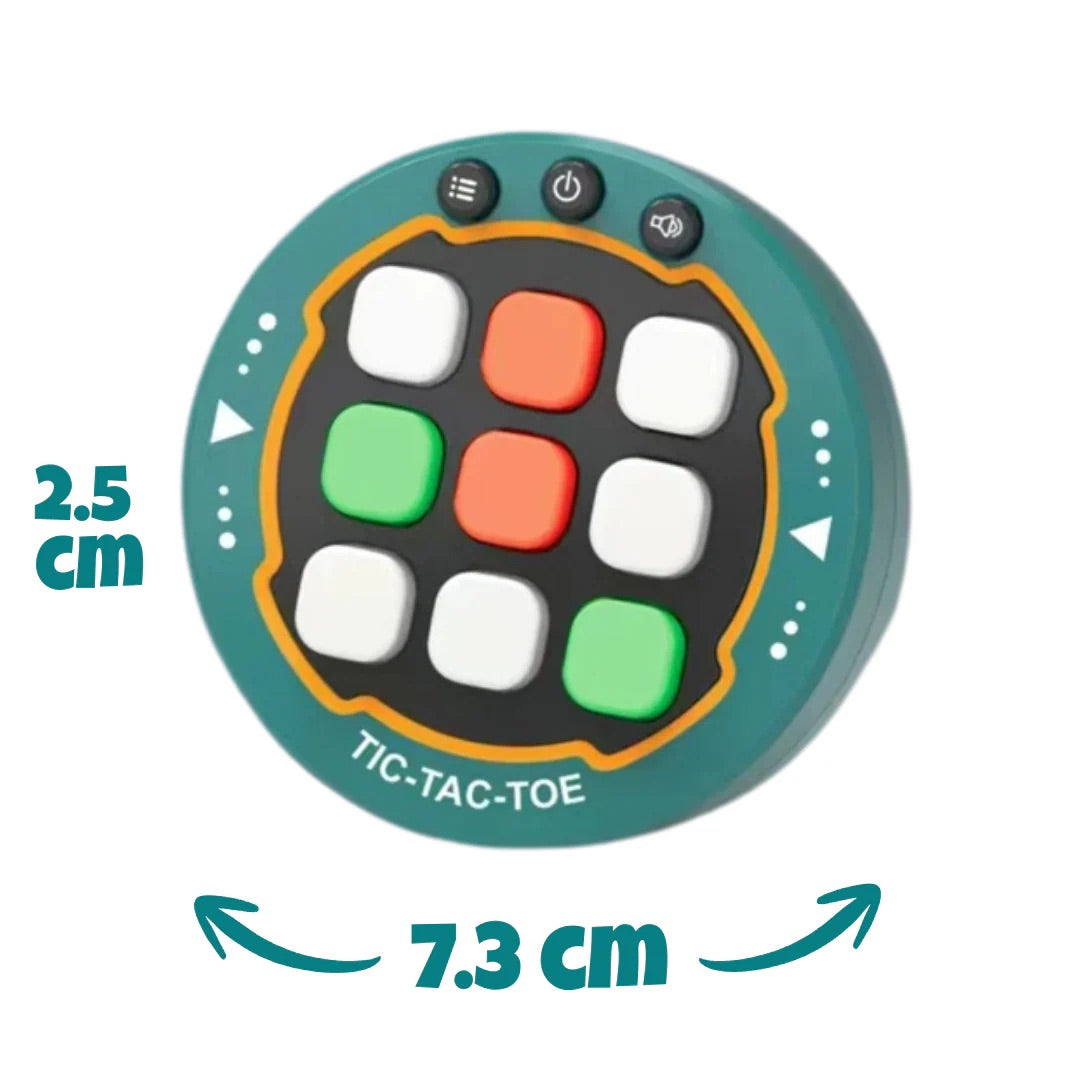 The TicTacGame is compact and portable, measuring 7.3 × 2.5 x 7.5 cm. It's small enough to carry in a bag, but big enough to enjoy comfortable gameplay.