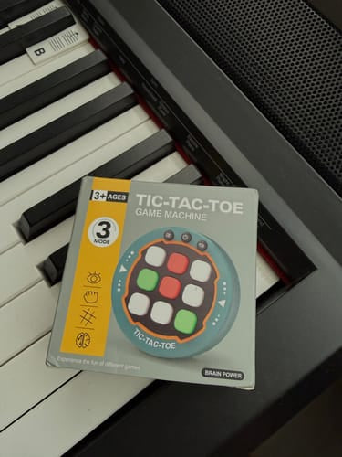 It's an electronic version of the classic game, with LED lights and sound effects that make every match more exciting. Just press the buttons to play, no paper or pens needed.